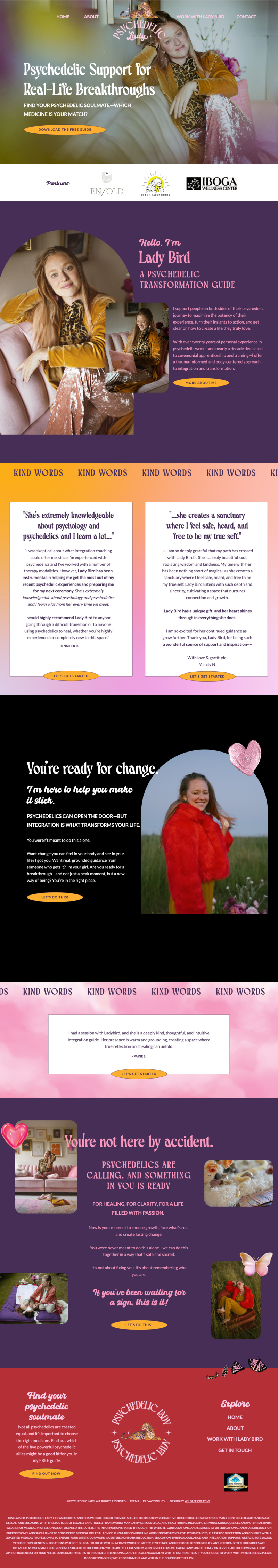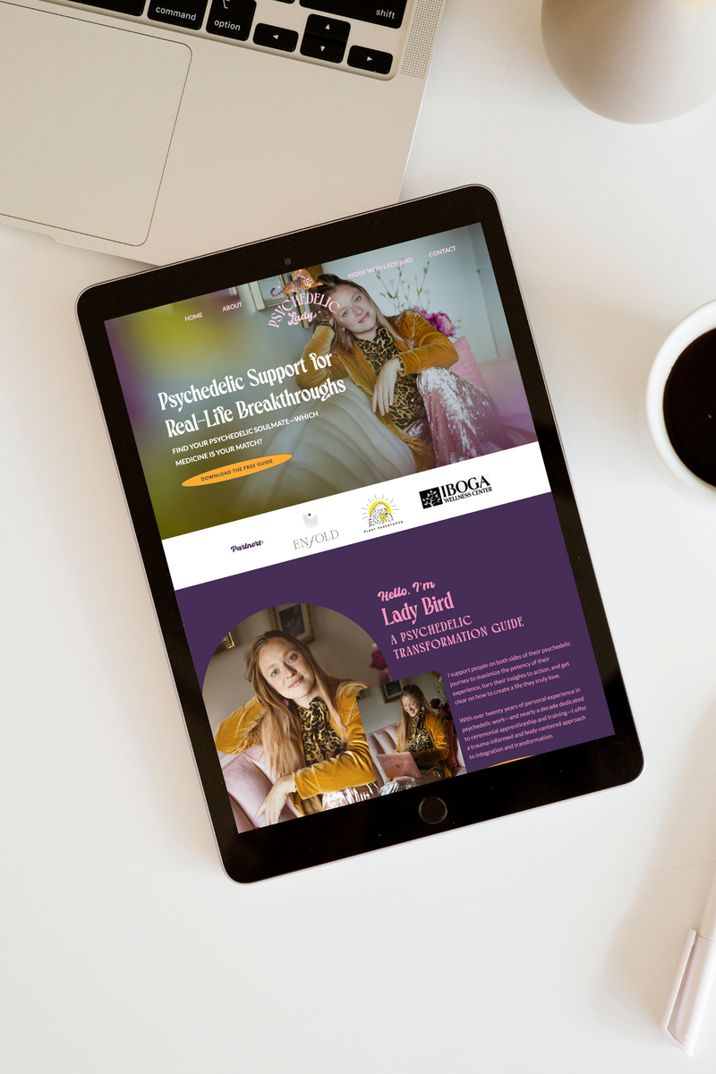 Lady Bird is a psychedelic integration guide and coach who has navigated her own psychedelic journey after feeling disconnected from her body and purpose. Now, she is on a mission to help women come home to their body, wisdom, and create a life their excited to wake up to. Lady Bird came to Wildlee Creative looking for a design that captures her transformative coaching experience. The goal was a brand and website that's feminine, exciting, and fun yet luxe and a bit retro while showcasing her knowledge and expertise.